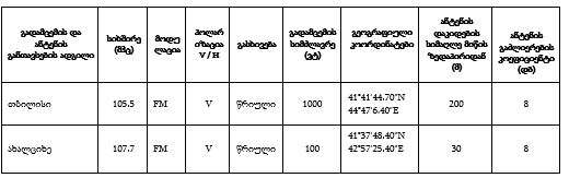ვ) მაუწყებლობის გავრცელების ტექნოლოგია და ტექნიკური პარამეტრები: