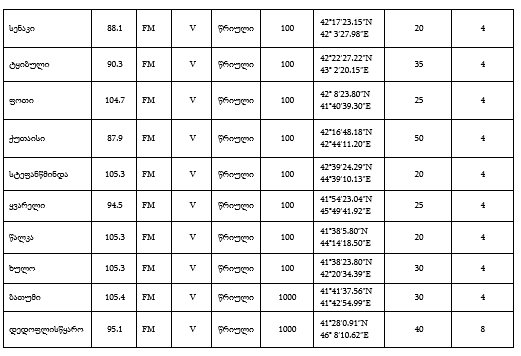 ა) ლიცენზიის სახე: რადიომაუწყებლობა;