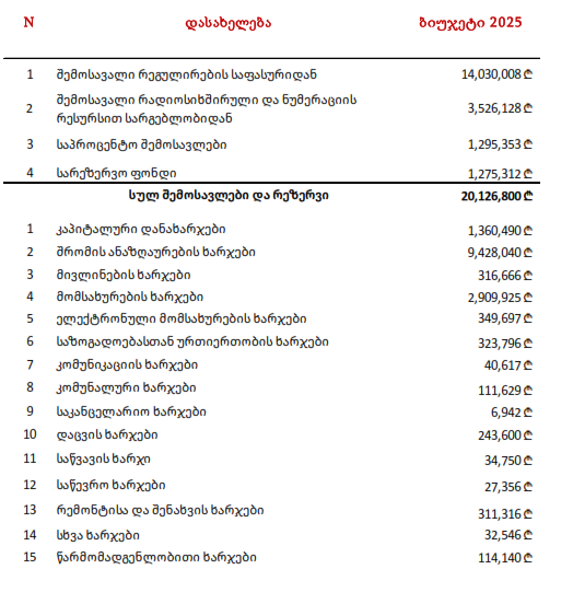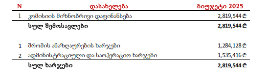 „1. დამტკიცდეს კომისიის 2025 წლის ბიუჯეტი შემდეგი სახით: