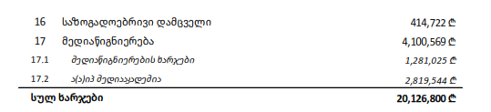 3. 2025 წლის ბიუჯეტის 9 თვის შესრულებისა და მომავალი 3 თვის საპროგნოზო ხარჯების შესაბამისად ცვლილება განიცადა ხარჯვითმა კატეგორიებმაც, რაც ძირითადად შეეხო კაპიტალურ დანახარჯებს, შრომის ანაზღაურების ხარჯს, მივლინების ხარჯებს, მომსახურეობის ხარჯებს, საზოგადოებასთან ურთიერთობის ხარჯებს, წარმომადგენლობით ხარჯებს, მედიაწიგნიერების ხარჯებს და სხვა ხარჯებს. ასევე ცვლილება განიცადა ააიპ მედიაკადემიის ხარჯების ბიუჯეტმაც: შრომის ანაზღაურების ხარჯებმა და ადმინისტრაციულმა და საოპერაციო ხარჯებმა.
